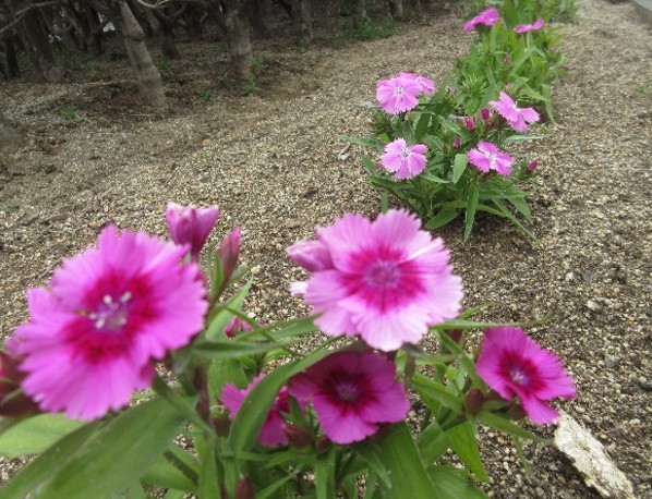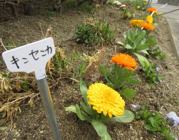 花壇も賑やかになってきました。(桜はまだの様子・・・)